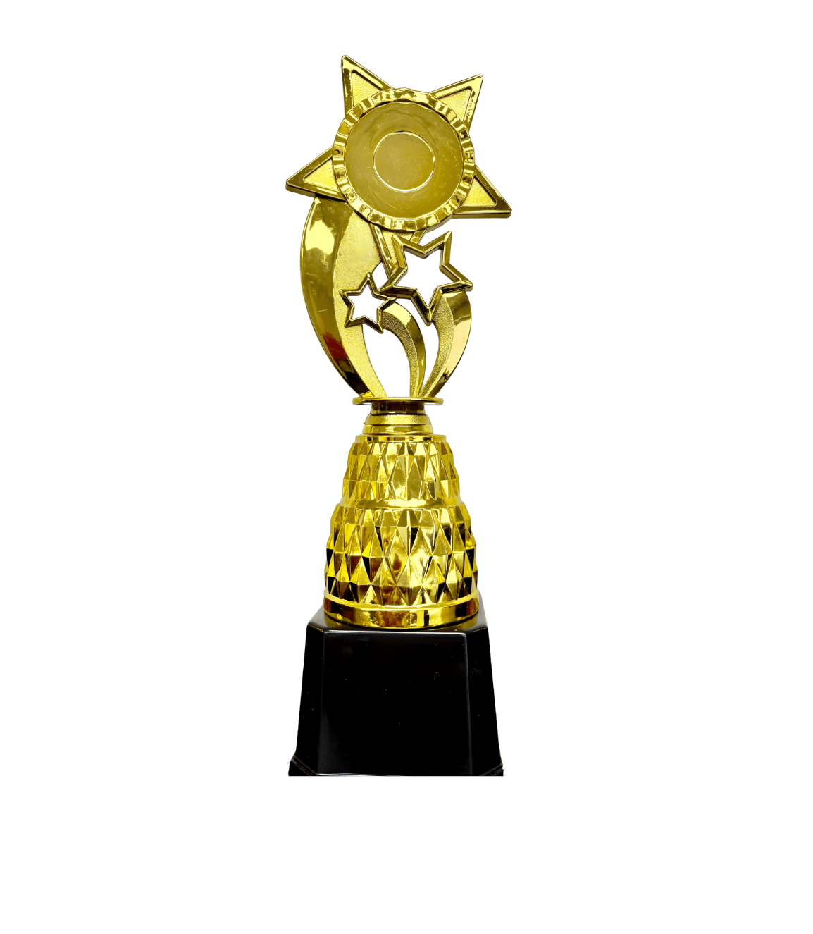 FAQ – 3 Star Gold Plastic Trophy (28 Cm)