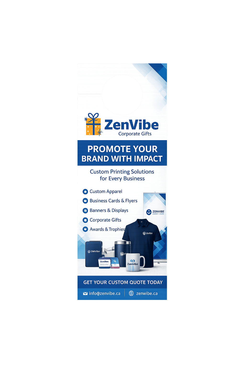 ZenVibe offers custom door hangers printing in Canada with reliable service and consistent print quality for both small and bulk orders.