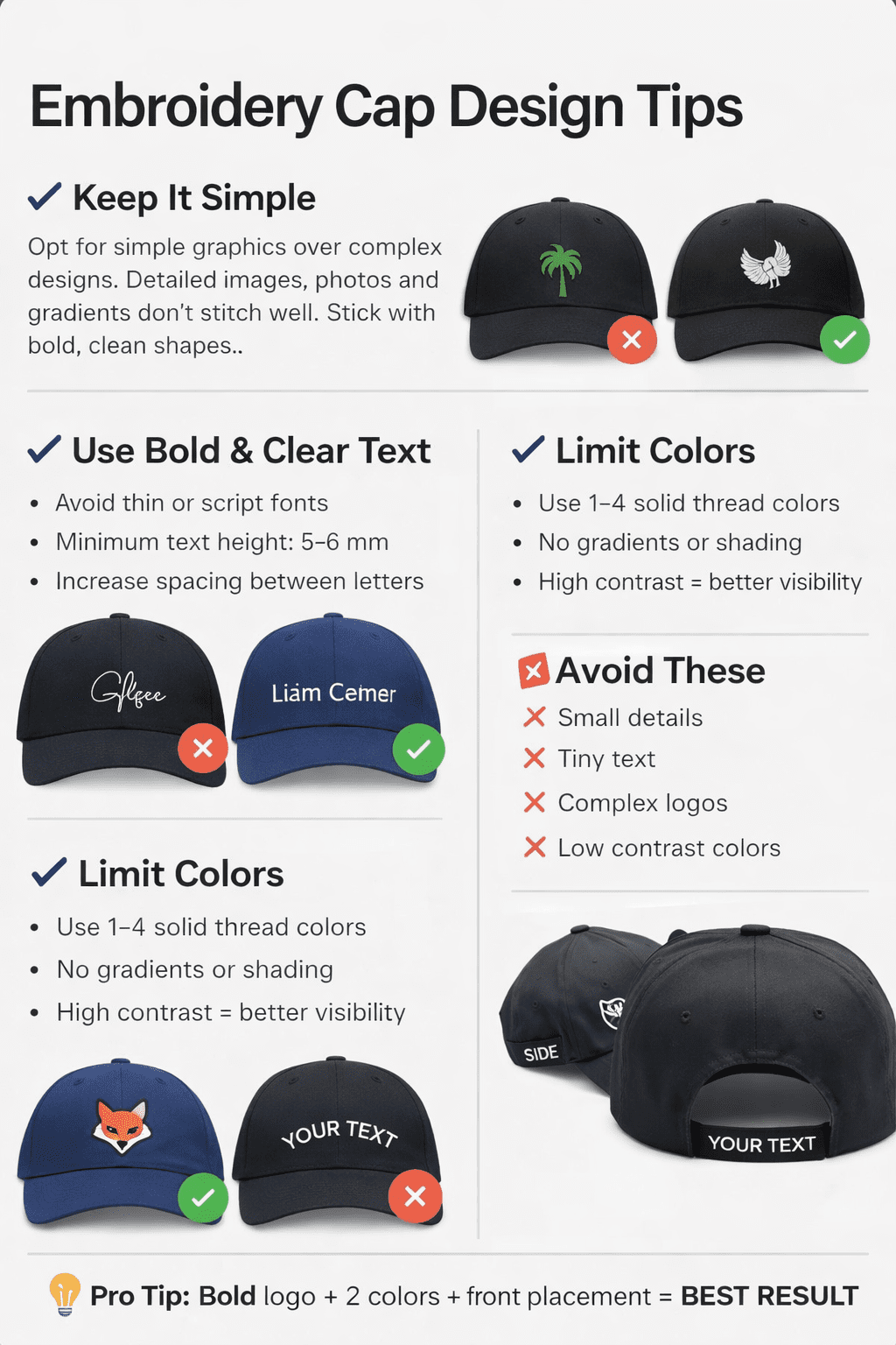 We use premium embroidery stitching for a raised, professional, and long-lasting logo finish.