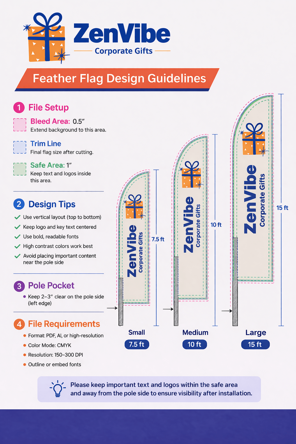 Pair your **Custom Feather Flag** with other Marketing Materials like banners, flyers, and table covers to create a complete branded setup that gets noticed. Internal links help your customers find related products and improve site SEO.